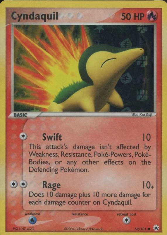 The Cyndaquil 2004 EX: Hidden Legends #059/101 Reverse Holo card in Raw TCG (Near Mint) condition has not changed in price in the last 30 days and was last sold for $14.99 .