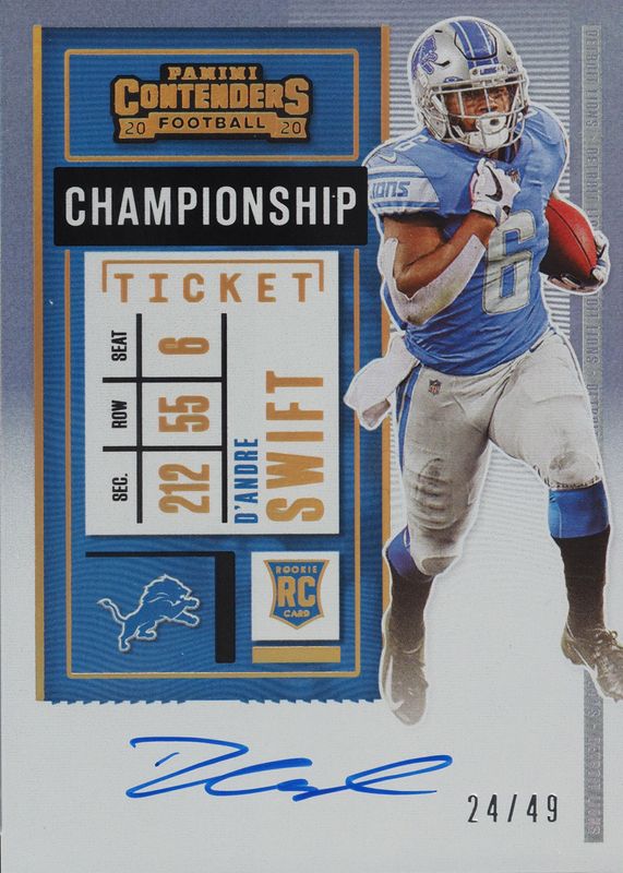 Best Prices Available For Sale of D'Andre Swift 2020 Contenders #115 Rookie Ticket Auto - Championship Ticket /49