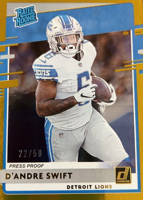 2020 DONRUSS GOLD /50 PRESS PROOF RATED ROOKIE D'ANDRE SWIFT LIONS