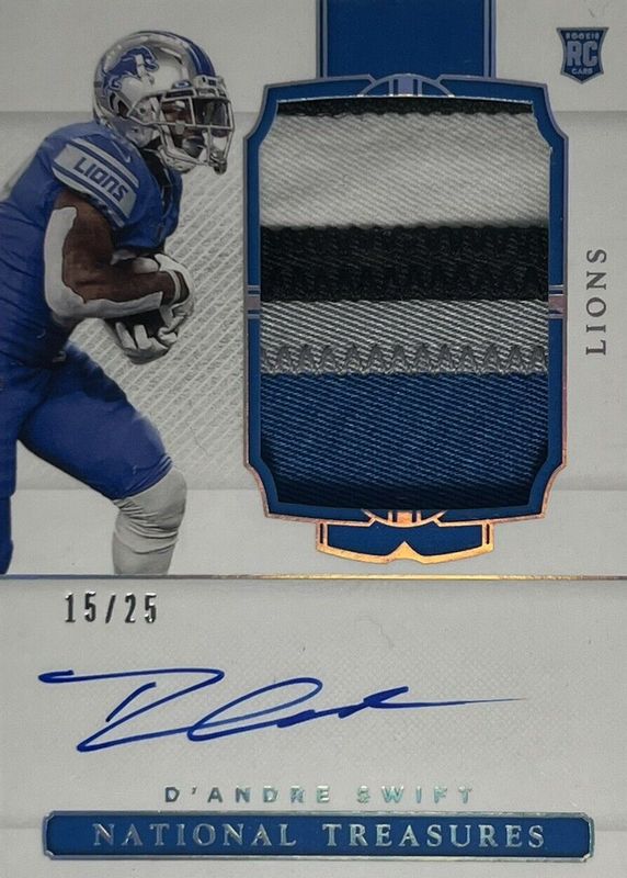 Auctions Ending Soon for D'Andre Swift 2020 National Treasures #165 Rookie Patch Auto - Holo Silver /25 RAW