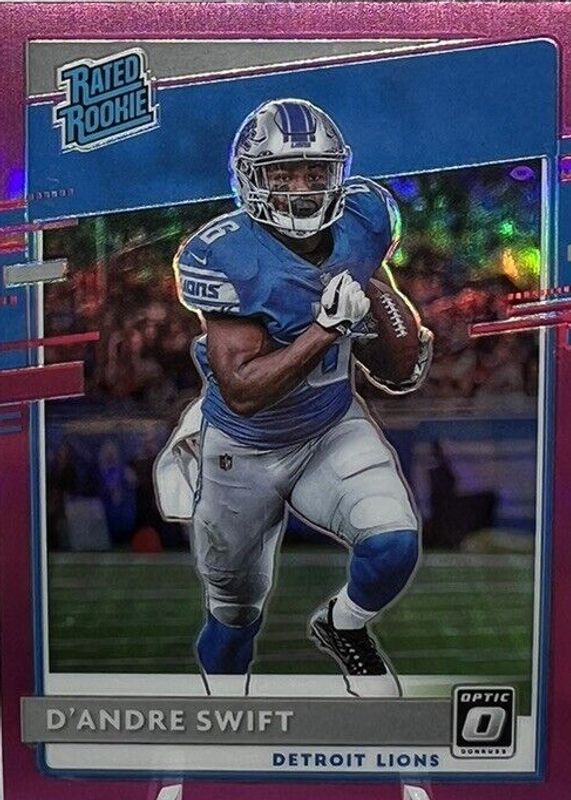 The D'Andre Swift 2020 Optic #159 Pink Rookie card in Raw condition has moved up $0.26 (+26.3%) in the last 30 days and was last sold for $1.25 .