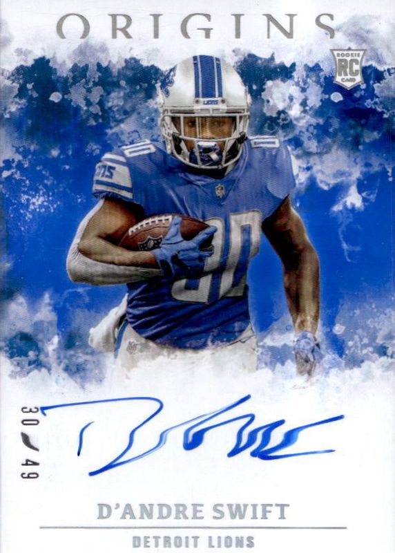 2020 Panini Origins D’Andre Swift RC Rookie On Card Auto Blue 10/49 Lions CLEAN!
