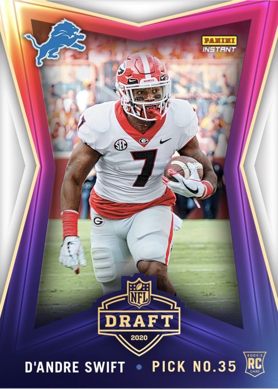 The D'Andre Swift 2020 Panini Instant #8 Draft Night (/577) Rookie card in Raw condition has not changed in price in the last 30 days and was last sold for $0.99 .