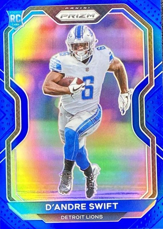 The D'Andre Swift 2020 Prizm #358 Blue /(SSP) Rookie card in Raw condition has not changed in price in the last 30 days and was last sold for $20.00 .