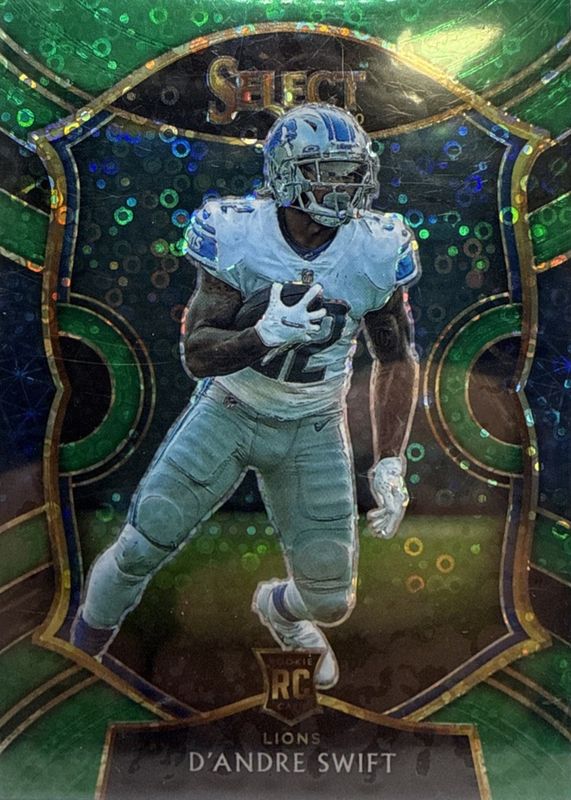The D'Andre Swift 2020 Select #51 Concourse Green Disco /5 Rookie card in Raw condition has not changed in price in the last 30 days and was last sold for $35.00 .