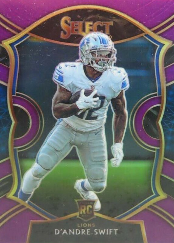 2020 Panini Select D’Andre Swift Concourse Purple Prizm #/75 Rookie RC Lions
