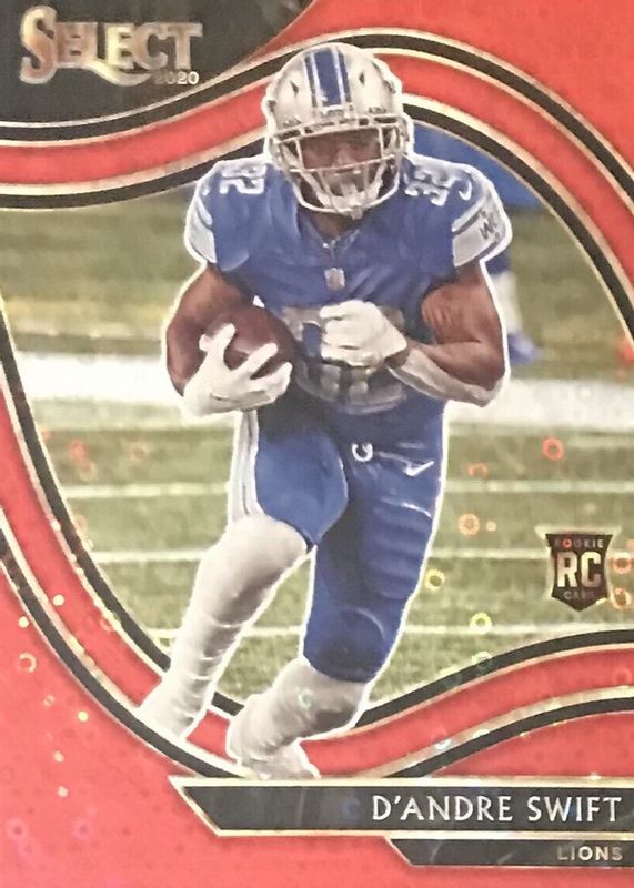The D'Andre Swift 2020 Select #351 Field Level Red Disco /49 Rookie card in Raw condition has not changed in price in the last 30 days and was last sold for $10.50 .