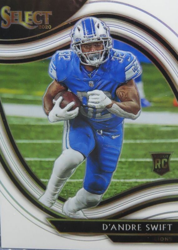 This card is 1 of 183 D'Andre Swift's card variations in the 2020 Select set being tracked by Sports Card Investor, including Club Level, Concourse, Field Level, Premier Level, and Club Level Blue Die-Cut.