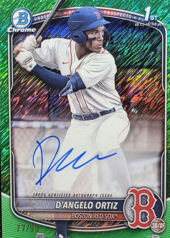 2025 Bowman Chrome D'Angelo Ortiz 1st Prospect Green Shimmer Auto 14/99 Red Sox