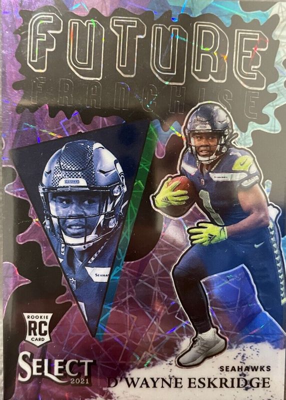This card is 1 of 3 D'Wayne Eskridge's card variations in the 2021 Select set being tracked by Sports Card Investor, including Future Franchise, and Future Franchise - Gold /10.