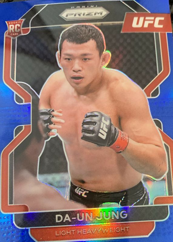 The Da Un Jung 2022 Prizm UFC #151 Blue /199 Rookie card in Raw condition has not changed in price in the last 30 days and was last sold for $1.75 .