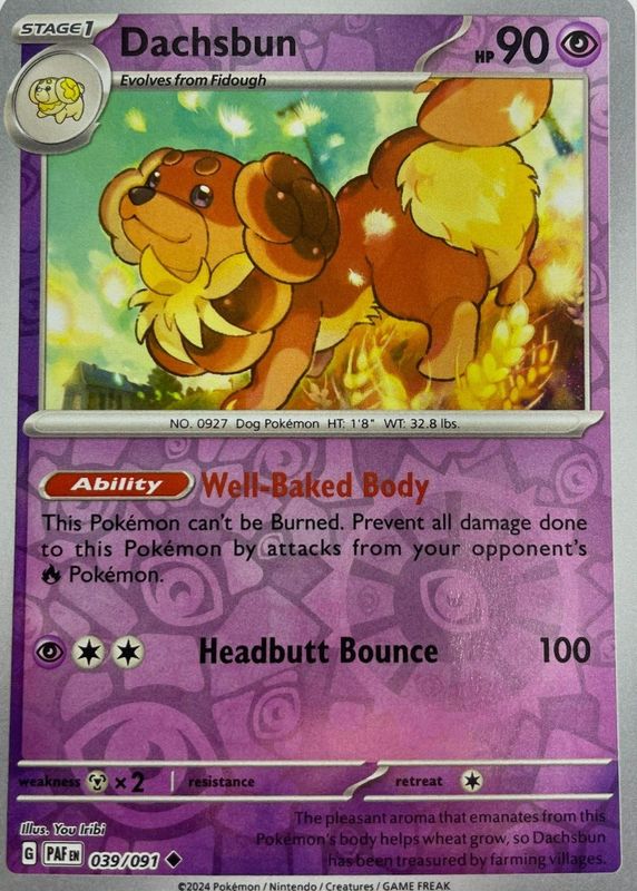 Dachsbun 2024 Scarlet & Violet: Paldean Fates #039/091 Base RAW TCG (LIGHTLY PLAYED) Price Guide
