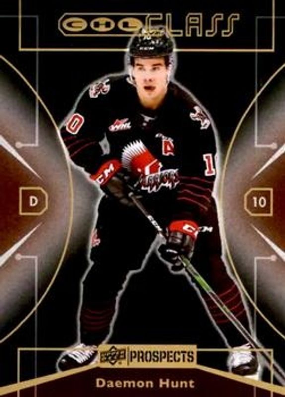 The Daemon Hunt 2019 Upper Deck CHL #C-13 1999 UD CHL Class Retro card is 1 of 10 Daemon Hunt's card variations in the 2019 Upper Deck CHL set being tracked by Sports Card Investor, including Base, Printing Plates Black /1, Printing Plates Cyan /1, Printing Plates Magenta /1, and Printing Plates Yellow /1.