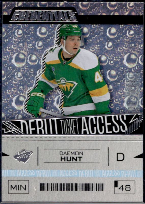The Daemon Hunt 2023 Upper Deck Credentials #128 Base /999 Rookie card is 1 of 20 Daemon Hunt's card variations in the 2023 Upper Deck Credentials set being tracked by Sports Card Investor, including Debut Ticket Access Horizontal Variation Yellow, Yellow, Debut Ticket Access Horizontal Variation /799, Red /349, and Orange /249.
