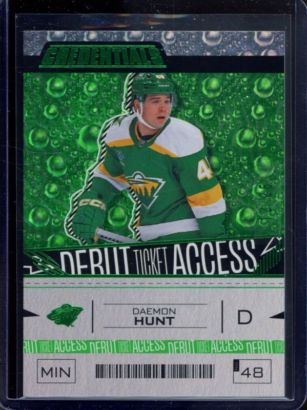 The Daemon Hunt 2023 Upper Deck Credentials #128 Green /25 Rookie card is 1 of 20 Daemon Hunt's card variations in the 2023 Upper Deck Credentials set being tracked by Sports Card Investor, including Base /999, Debut Ticket Access Horizontal Variation Yellow, Yellow, Debut Ticket Access Horizontal Variation /799, and Red /349.
