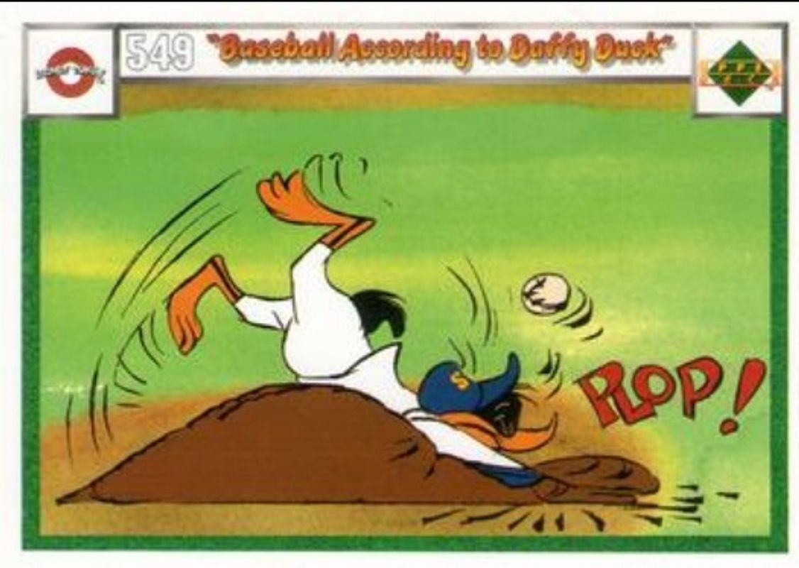 Other popular players in the 1990 Upper Deck Comic Ball set include Magnetic Field, Squeeze Play, Porky Pig and Charlie Dog, Acme Battle, and Curve Ball.