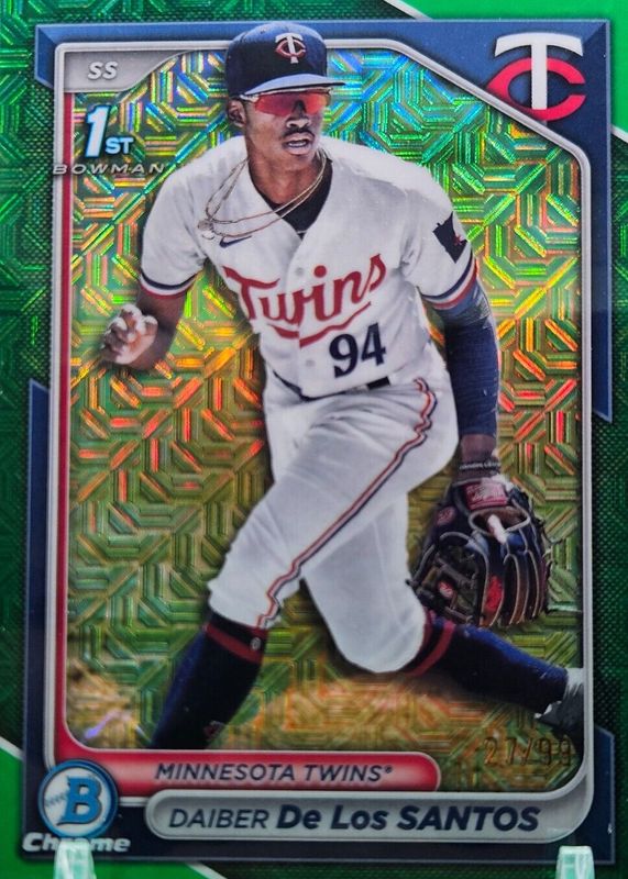The Daiber De Los Santos 2024 Bowman Chrome Mega Box #BCP-185 Prospects - Green Mojo Refractor /99 (1st) card in Raw condition has not changed in price in the last 30 days and was last sold for $4.99 .