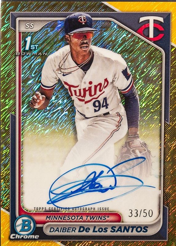 2024 Bowman Chrome Daiber De Los Santos 1st Gold Shimmer Auto /50 Twins