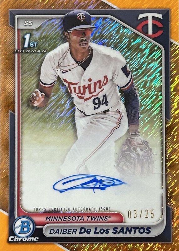 Daiber De Los Santos 2024 Bowman Chrome #CPA-DD Prospect Auto - Orange Shimmer Refractor /25 (1st) RAW Price Guide
