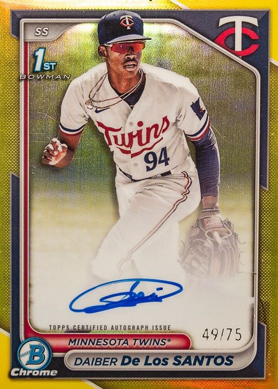 Best Prices Available For Sale of Daiber De Los Santos 2024 Bowman Chrome #CPA-DD Prospect Auto - Yellow Refractor /75 (1st)