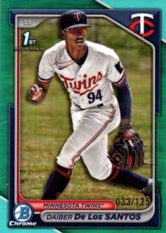 Daiber De Los Santos 2024 Bowman Chrome Prospects Aqua Refractor 1st RC #51/125