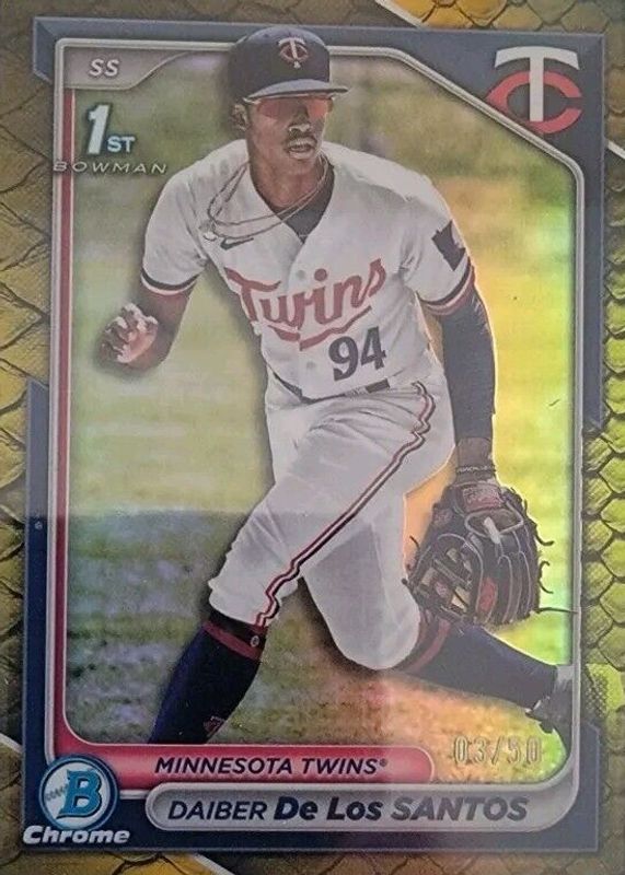 2024 Bowman Chrome Daiber De Los Santos 1st Gold Reptilian Refractor #/50 Twins