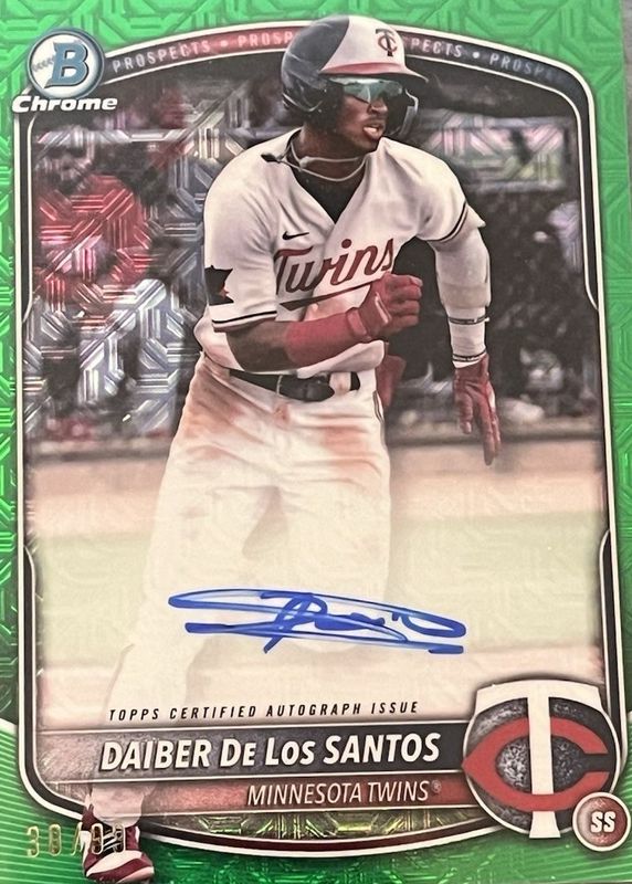 2025 Bowman Chrome Mega Daiber De Los Santos /99 Green Mojo Auto Twins