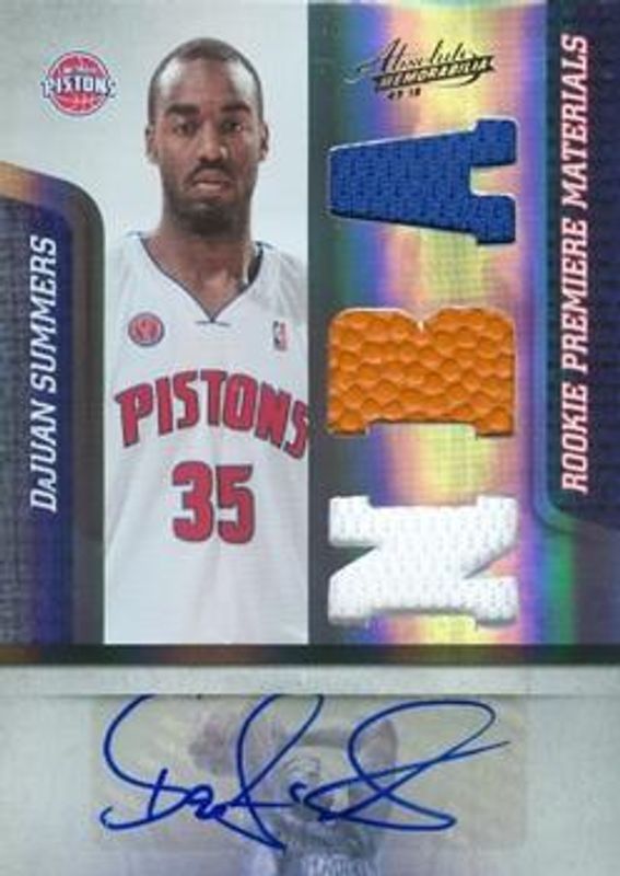 The DaJuan Summers 2009 Absolute Memorabilia #170 Base /499 Rookie card is 1 of 14 DaJuan Summers' card variations in the 2009 Absolute Memorabilia set being tracked by Sports Card Investor, including Rookie Materials Prime Jumbo - Basketball, Rookie Materials Prime Jumbo Basketball Signatures, Rookie Materials Prime Jumbo Basketball Spectrum, Rookie Materials Jumbo - Basketball /25, and Rookie Materials Jumbo Basketball Signatures /25.
