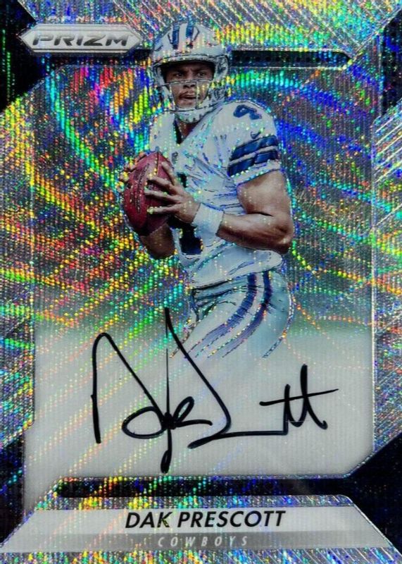 The Dak Prescott 2016 Prizm #RA-DPS Rookie Autographs - Blue Wave /149 card in Raw condition has not changed in price in the last 30 days and was last sold for $399.99 .
