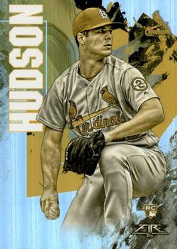 The Dakota Hudson 2019 Topps Fire #51 Gold Minted Rookie card is 1 of 13 Dakota Hudson's card variations in the 2019 Topps Fire set being tracked by Sports Card Investor, including Base, Blue Chip, Flame, Onyx, and Orange /299.