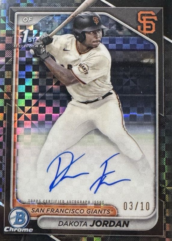 Dakota Jordan 2024 Bowman Draft #CPA-DJ Chrome DP Auto - Black X-Fractor /10 (1st) RAW Price Guide