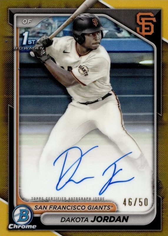 2024 Bowman Chrome Draft Gold Refractor Dakota Jordan 1st Rookie AUTO 46/50