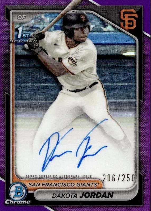2024 1st Bowman Chrome Draft Dakota Jordan Purple Refractor Auto /250 Giants