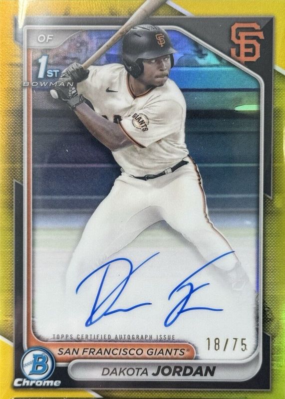 2024 Dakota Jordan 1st Bowman Chrome Auto Yellow /75 Giants