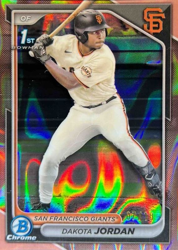 Auctions Ending Soon for Dakota Jordan 2024 Bowman Draft #BDC-71 Chrome - Rose Gold Lava Refractor /10 (1st) PSA 10