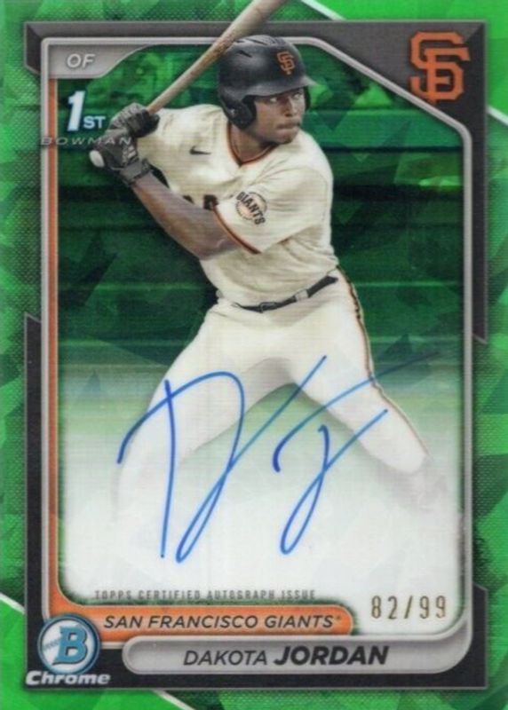 2024 Bowman Chrome Sapphire CPA-DJ Dakota Jordan Green Auto 56/99 Giants