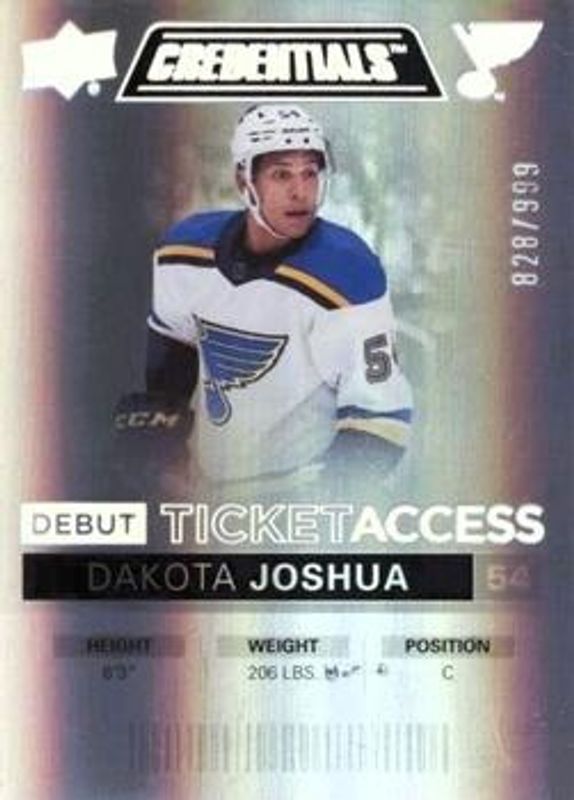 Dakota Joshua 2021 Upper Deck Credentials #88 Base /999 Rookie RAW Price Guide