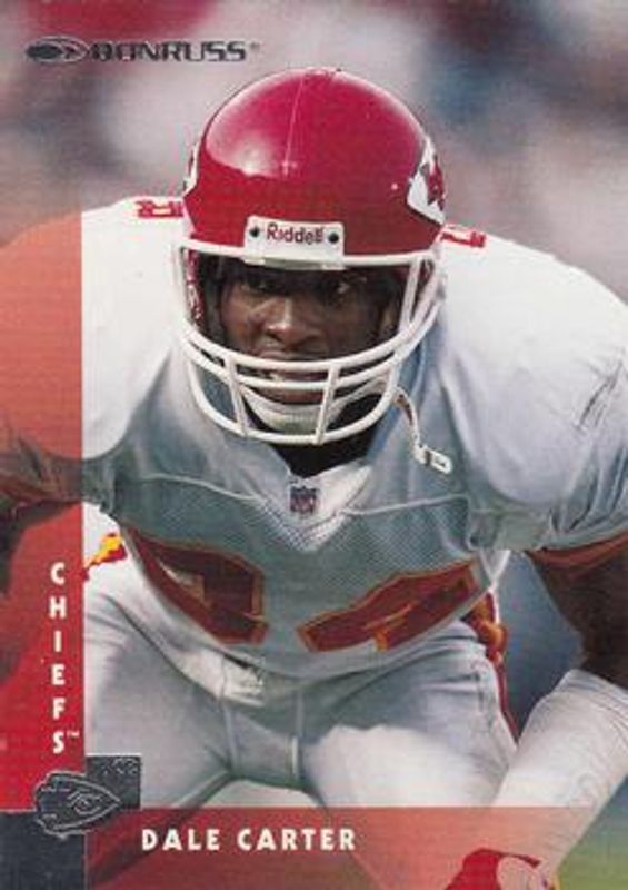 The Dale Carter 1997 Donruss #145 Base card is 1 of 3 Dale Carter's card variations in the 1997 Donruss set being tracked by Sports Card Investor, including Press Proof Gold Die-Cut, and Press Proof Silver.