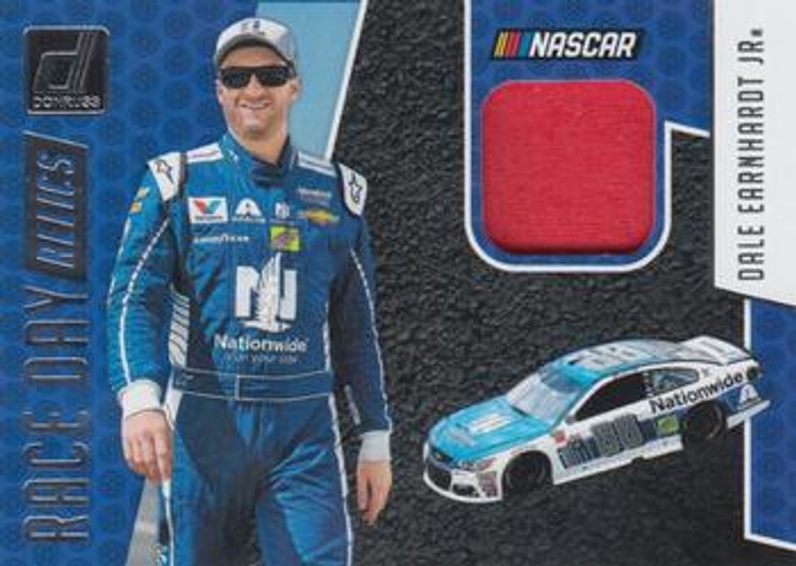 The Dale Earnhardt Jr. 2019 Donruss NASCAR #RD-JR Race Day Relics card is 1 of 92 Dale Earnhardt Jr.'s card variations in the 2019 Donruss NASCAR set being tracked by Sports Card Investor, including #102a Base, #8 Base, #72a Base, #162 Base, and #102b Base.