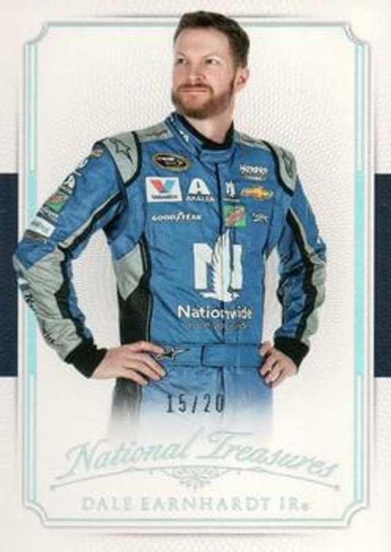 The Dale Earnhardt Sr. 2016 National Treasures NASCAR #2 Century Silver /20 card is 1 of 112 Dale Earnhardt Sr.'s card variations in the 2016 National Treasures NASCAR set being tracked by Sports Card Investor, including #27 Base /25, #2 Base /25, #27 Century Silver /20, #2 Century Gold /15, and #27 Century Gold /15.