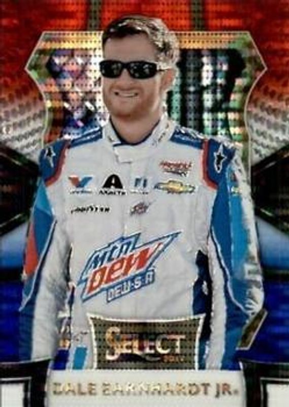 The Dale Earnhardt Sr. 2017 Select NASCAR #66 Red White & Blue Pulsar /299 card is 1 of 87 Dale Earnhardt Sr.'s card variations in the 2017 Select NASCAR set being tracked by Sports Card Investor, including #66 Base, #124 Base, #64 Base, #65 Base, and #65 Purple Pulsar.