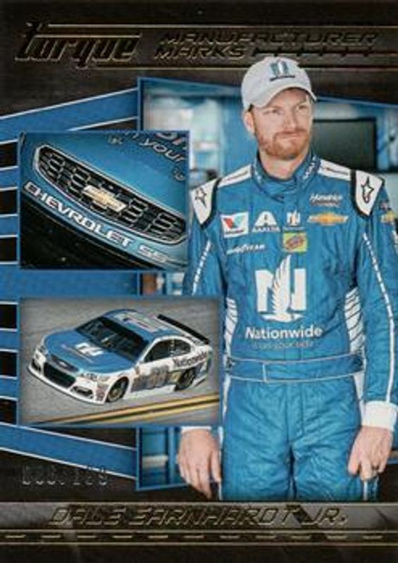 The Dale Earnhardt Sr. 2017 Torque NASCAR #MM4 Manufacturer Marks Gold /199 card is 1 of 162 Dale Earnhardt Sr.'s card variations in the 2017 Torque NASCAR set being tracked by Sports Card Investor, including #58 Base, #73 Base, #97 Base, #27 Base, and #58 Gold.