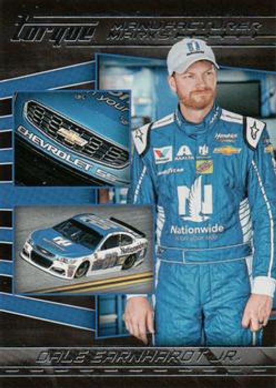 The Dale Earnhardt Sr. 2017 Torque NASCAR #MM4 Manufacturer Marks card is 1 of 162 Dale Earnhardt Sr.'s card variations in the 2017 Torque NASCAR set being tracked by Sports Card Investor, including #58 Base, #73 Base, #97 Base, #27 Base, and #58 Gold.