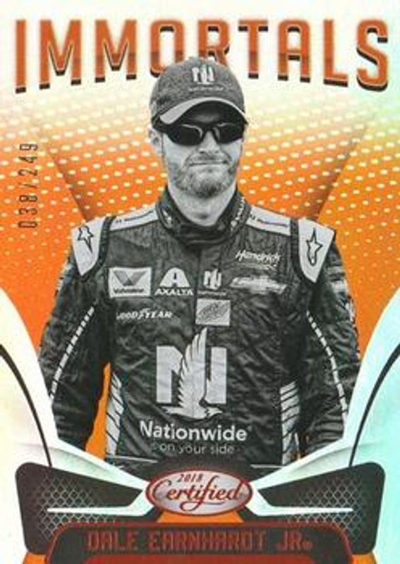 The Dale Earnhardt Sr. 2018 Certified NASCAR #86 Orange /249 card is 1 of 97 Dale Earnhardt Sr.'s card variations in the 2018 Certified NASCAR set being tracked by Sports Card Investor, including #11 Base /149, #86 Base /149, #11 Orange /249, #86 Mirror Gold /25, and #11 Mirror Gold /25.