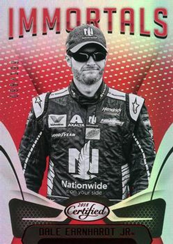 The Dale Earnhardt Sr. 2018 Certified NASCAR #86 Red /25 card is 1 of 97 Dale Earnhardt Sr.'s card variations in the 2018 Certified NASCAR set being tracked by Sports Card Investor, including #11 Base /149, #86 Base /149, #86 Orange /249, #11 Orange /249, and #86 Mirror Gold /25.