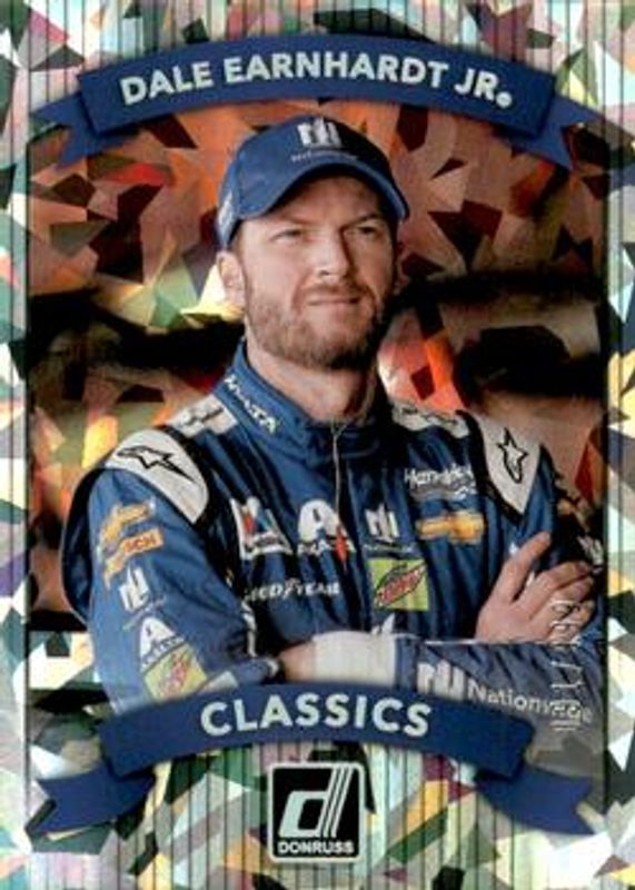 The Dale Earnhardt Sr. 2018 Donruss NASCAR #C1 Classics Cracked Ice /999 card is 1 of 101 Dale Earnhardt Sr.'s card variations in the 2018 Donruss NASCAR set being tracked by Sports Card Investor, including #53b Base, #53a Base, #2 Base, #101b Base, and #150 Base.