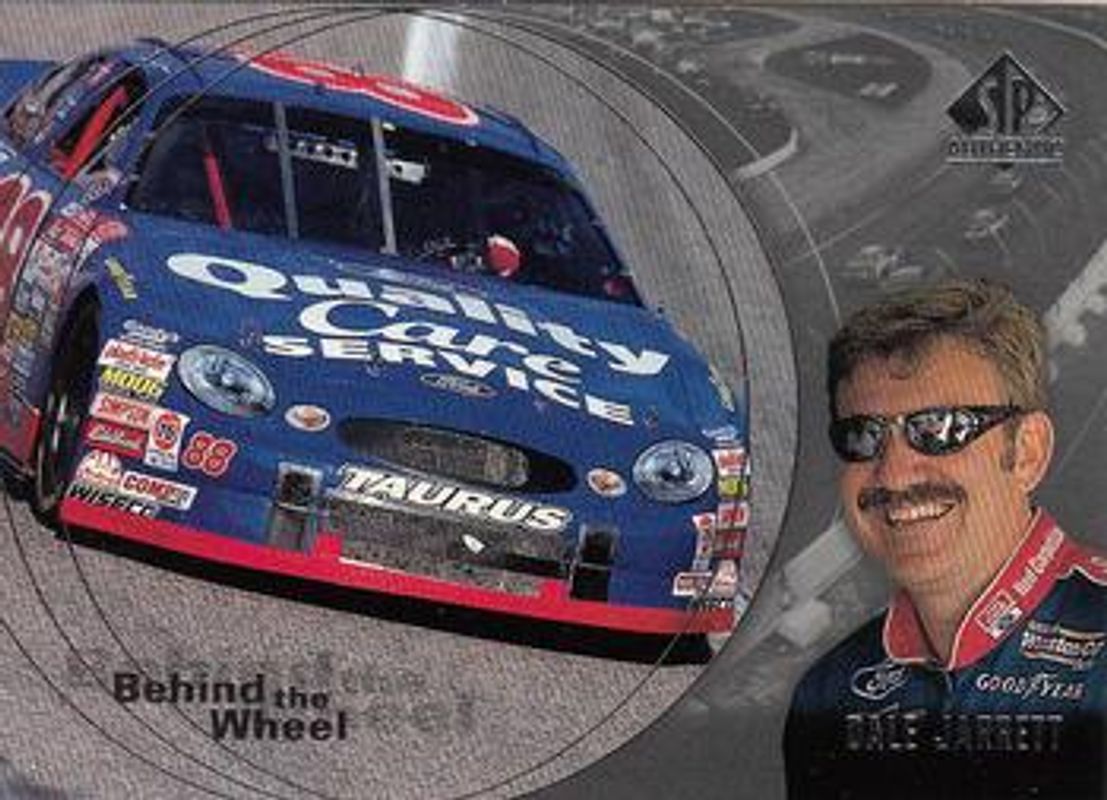 The Dale Jarrett 1998 SP Authentic #BW2 Behind the Wheel card is 1 of 7 Dale Jarrett's card variations in the 1998 SP Authentic set being tracked by Sports Card Investor, including #78 Base, #12 Base, #46 Base, #BW2 Behind the Wheel - Gold, and #BW2 Behind the Wheel Die-Cut /100.