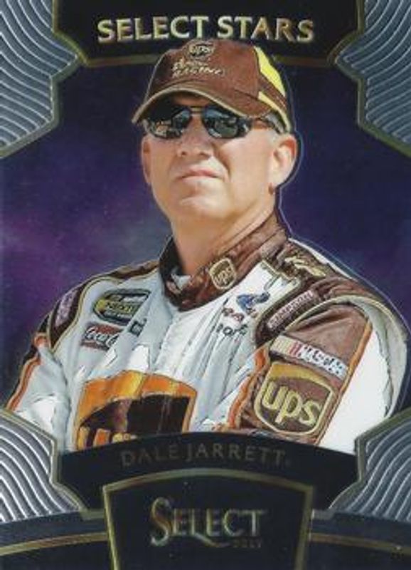 The Dale Jarrett 2017 Select NASCAR #S12 Select Stars card is 1 of 17 Dale Jarrett's card variations in the 2017 Select NASCAR set being tracked by Sports Card Investor, including Base, White /50, Tie-Dye /24, Gold /10, and Black /3.