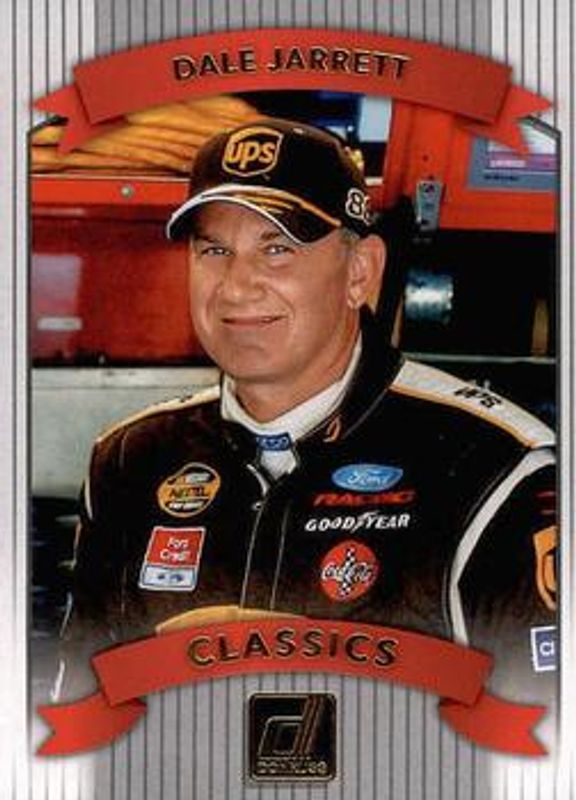 The Dale Jarrett 2018 Donruss NASCAR #C12 Classics card is 1 of 25 Dale Jarrett's card variations in the 2018 Donruss NASCAR set being tracked by Sports Card Investor, including #106 Base, #156 Base, #156 Gold Foil /499, #106 Gold Foil /499, and #106 Red Foil /299.