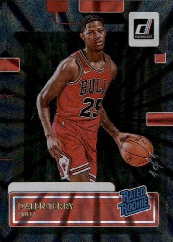 This card is 1 of 20 Dalen Terry's card variations in the 2022 Donruss set being tracked by Sports Card Investor, including Base, Press Proof Purple /199, Holo Laser /149, Choice Red /99, and Holo Purple Laser /99.